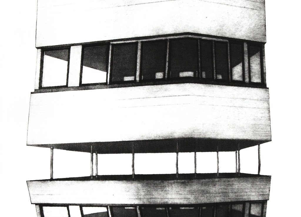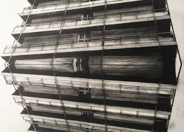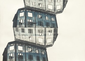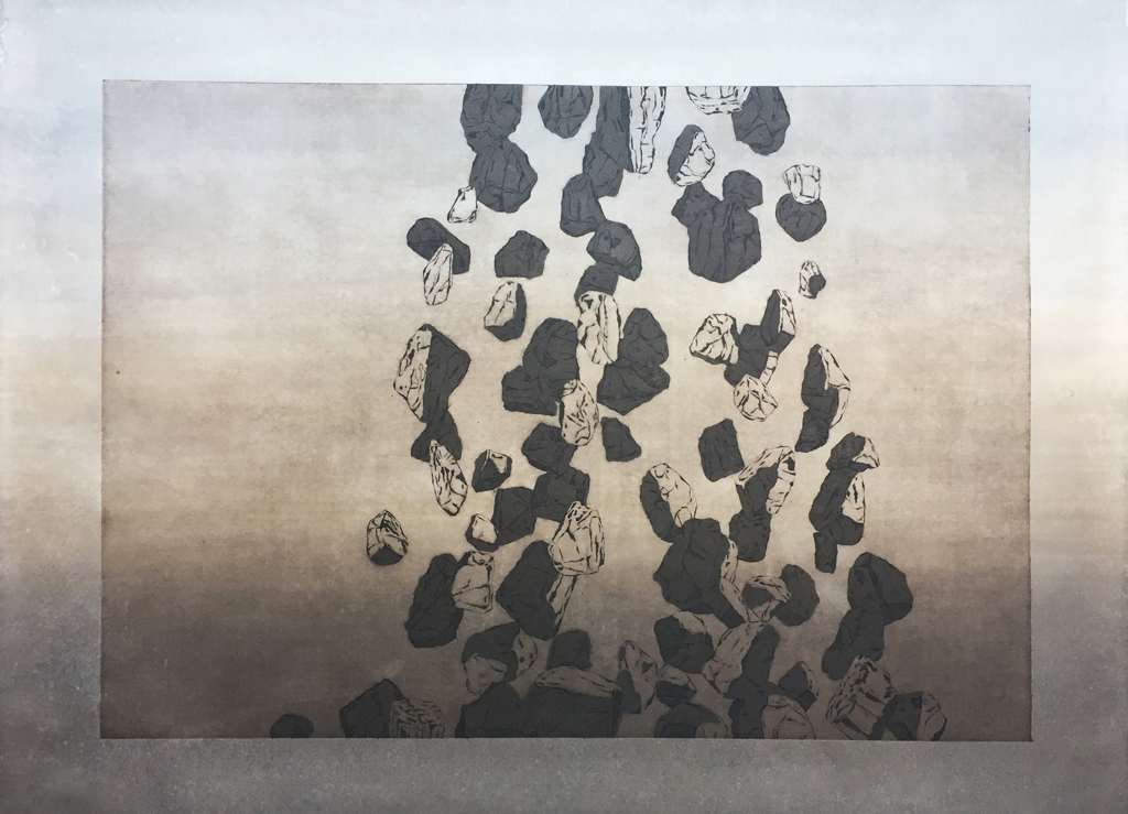 Cecilie Enevold Nielsen is a Copenhagen-based Danish artist who works with original prints and small editions. She is assigned to the gallery Format Artspace in Copenhagen. In her studio in Nørrebro, she works with an unconventional choice of material; tape. Combined with the printing technique she creates a characteristic expression where both duct tape, masking tape and blank tape on a plate is run through a traditional printing press. It creates different shades, overlaps and shapes, and the way the ink is wiped off the plates gives the prints elements of monotype. In her work she’s experimenting with the synthetic in the use of tape and the analogue expression in the way she prints here work.The themes in Cecilie’s works are absence and darkness, articulated in houses, landscapes and empty spaces.